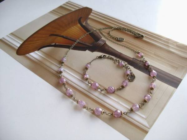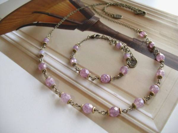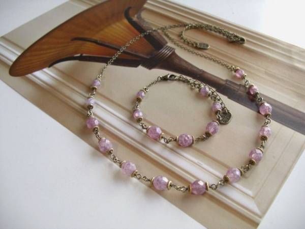 都会のアリス・・シリーズです♪ラベンダー色の雨・・淡い紫色のチェコビーズのネックレスとブレスレットです♪シックな座金を合わせてアンティーク・モダンしています♪チェコビーズは6ミリ、8ミリのラウンドカットです♪ネックレスの長さは60センチ+アジャスター10センチで最長70センチ位です♪ブレスレットは16センチ+アジャスター6センチで最長22センチ位です♪単品やお揃いのネックレスやピアスも出品しています。ハンドメイドをご理解頂いてノークレーム、ノーリターンでお願いします