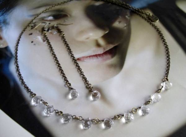 幻想・セレクション・・シリーズです♪星を紡いで・・神秘的な水晶のネックレスとピアス2点セットです♪9×6ミリのドロップカットの水晶はランダムに繋いで可憐な表情です♪ネックレスの長さは45センチ+アジャスター10センチで最長55センチ位です♪ピアスは全長10センチ位です♪イヤリングにも変更出来ます♪お揃いのネックレスやピアスも出品しています♪ハンドメイドをご理解頂いてノークレーム、ノーリターンでお願いします