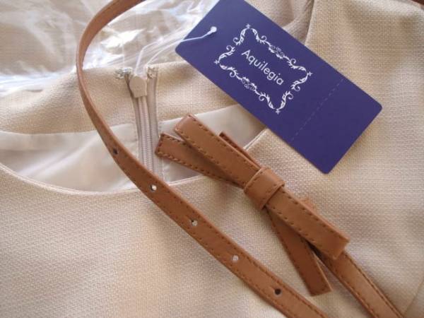 未使用 訳有り◆Aquilegia◆リボンベルト タックフレアワンピース 11号 ベージュ