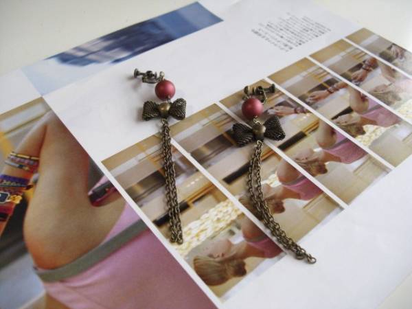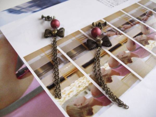 セシル・スタイル・・シリーズです♪マドモアゼル同盟2・・シックなダークレッドの樹脂パールのイヤリングです♪軽い付け心地で楽しんでいただけます♪マットな深い赤のパールにクラシックなリボンチャームを合わせて大人のロマンチックしています♪樹脂パールは8ミリの丸玉です♪長さは全長11センチ位です♪ピアスにも変更出来ます♪お揃いのネックレスやブレスレットも出品しています♪シンプルで飽きのこないいつまでも着けられるデザインを考えて作りました!ハンドメイドをご理解頂いてノークレーム、ノーリターンでお願いします