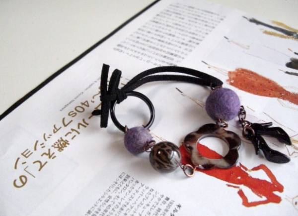 セシル・スタイル・・シリーズです♪パンク少女・・シックなフェルト玉のブレスレットです♪グレーパープルやダークパープルなど秋色のフェルト玉にオニキスリングや豹柄の丸玉やフラワーリングや黒の合皮ひもを合わせてアートな表情です♪♪フェルト玉は10ミリから15ミリ位までの大きさ違いです♪オニキスリングや丸玉、フラワーリングの樹脂ビーズは12ミリから25ミリ位までの大きさ違いです♪長さは全長23センチ位で調節自由です♪♪お揃いのネックレスも出品しています♪シンプルで長く着けていただけるデザインを考えて作りました♪ハンドメイドをご理解頂いてノークレーム、ノーリターンでお願いします