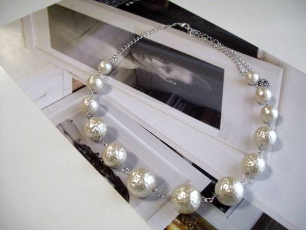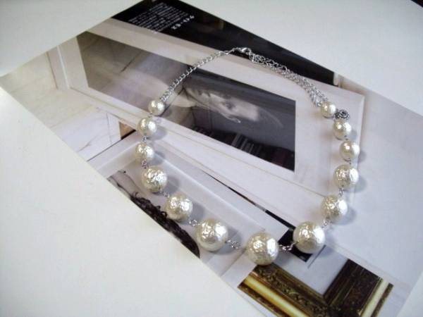 巴里色スケッチ・・シリーズです♪貴婦人のパール・・ふんわりやさしいオフホワイトのコットンパールのネックレスです♪とても軽いので長く着けていただけたらと思います♪グラデーションの丸玉のパールがクラシカルな表情です♪8ミリから16ミリ位までのパールです♪長さは全長60センチ位で調節自由です♪お揃いのネックレスやブレスレットも出品しています♪シンプルで飽きのこないいつまでも着けられるデザインを考えて作りました!ハンドメイドをご理解頂いてノークレーム、ノーリターンでお願いします