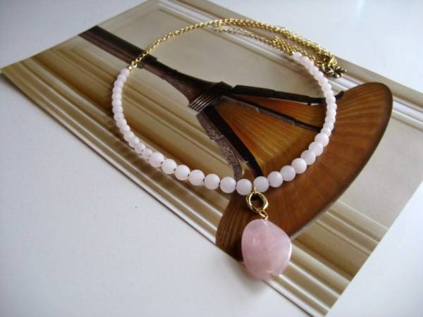 春の予感・・シリーズです♪ピンク&ピンク・・繊細なローズクォーツのネックレスです♪マットなやさしい表情のフロスト加工のローズクォーツに大きなツイストオーバルのローズクォーツをトップに合わせて存在感のあるネックレスです♪フロスト加工のローズクォーツは6ミリ、8ミリの丸玉です♪トップのローズクォーツは3×2センチ位です♪長さは全長82センチ位で調節自由です♪トップは5センチ位です♪チョーカー風にされても素敵です♪お揃いのブレスレットやピアスも出品しています♪シンプルで飽きのこないいつまでも着けられるデザインを考えて作りました!ハンドメイドをご理解頂いてノークレーム、ノーリターンでお願いします