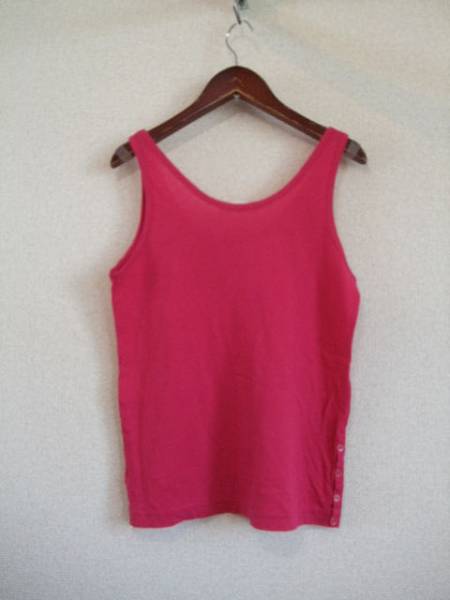 | 商品紹介 | 鮮やかなフューシャピンクに両横の裾にボタンが付いた タンクトップです。 素材:綿50% ポリエステル50% |
