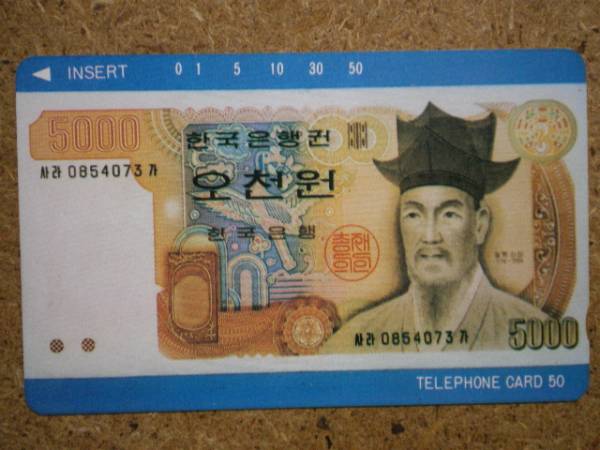 u14-313・韓国紙幣 5000ウォン テレカ