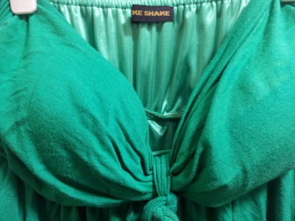 良品中古!! ★ SHAKE SHAKE シェイクシェイク ミニワンピース パット付き ★ チューブトップ ベアトップワンピース 格安にて ★ サイズM 緑