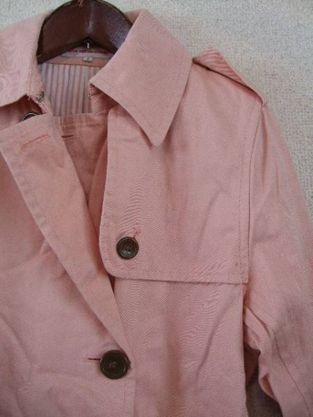 | 商品紹介 | 淡いピンクがかわいいトレンチコートです。 やや短めの丈でバランス良く着こなせます。 素材:表地・裏地 綿100% |
