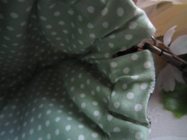 内布には 若草色に白のドット柄の生地 ( 綿 100% ) を使っています。