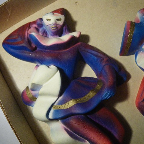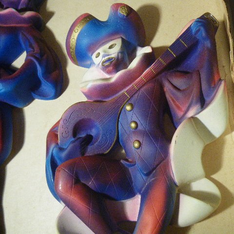 ハーレクインモチーフの壁掛けです。パッケージに固定されたままのデッドストック品です。 素材 石膏 ・割れや補修はありません。 ・保管による極僅かなキズ、ペイントロス、擦れ等はありますが、非常に良いコンディションです。 |