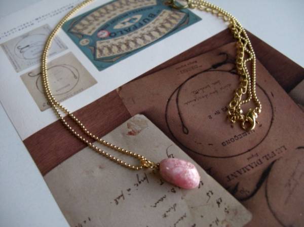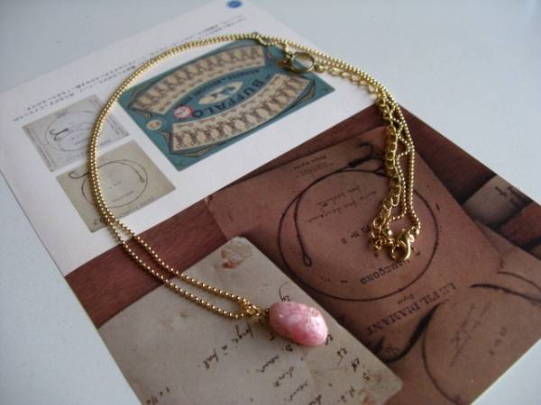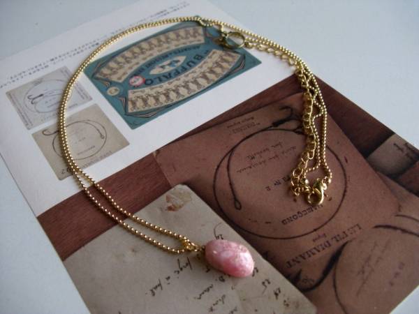 切ない恋・・シリーズです♪アンティークピンクを集めて・・可憐なインカローズのネックレスです♪甘さを抑えたアンティークピンクのインカローズはラフタンブルです♪ボールチェーンを合わせてロマンチックしています♪10×18ミリ位のラフタンブルのインカローズは華奢なボールチェーンを合わせました♪長さは76センチ+アジャスター14センチで最長90センチ位です♪お揃いのネックレスやブレスレットも出品しています♪シンプルで飽きのこないいつまでも着けられるデザインを考えて作りました♪ハンドメイドをご理解頂いてノークレーム、ノーリターンでお願いします