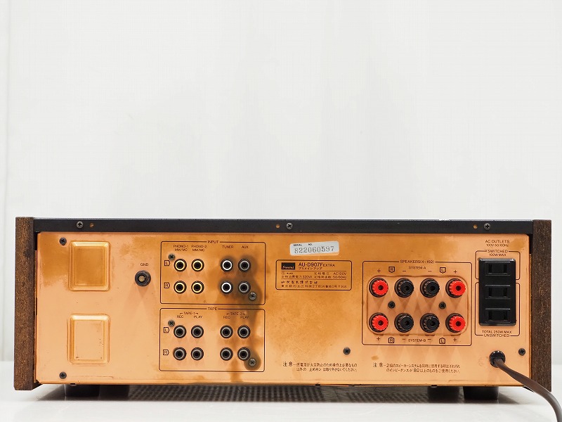 ■メーカー : SANSUI ■型番 : AU-D907F EXTRA ■外径寸法 : W460×H160×D444mm ■重量 : 17.7kg 【商品の状態 当店での確認内容】 音声出力は確認できておりますが、入出力端子/スイッチ類に接触不良がございます。 ボリームダイヤルにガタツキがございます。 ※上記により【難あり商品】としての出品となります。 「商品の状態」に関しましては当方主観の目安となります。外観などは中古品で個人差もありますので詳細は画像にてご判断ください。 画像にて不明な点はご質問下さい。 出品商品は画像のものですべてになります。画像に写っているもの以外は付属いたしません。 【送料 全国一律 2,080 円 沖縄、離島は別途お見積り】 ※送料がお得になるサービスです(下取りシステムのご案内です) ストア決済利用時にクレジットカードやPayPay残高/PayPayクレジットを利用の方は留意点がございますのでこちらを参照上ご利用ください。 当ストアでは商品を安全にお届け出来るよう提携運送会社と協議の上、発泡緩衝材や強度段ボールの使用等 運送会社が指定する梱包方法や資材を採用しております。 より安全にお届け出来るよう商品仕様により梱包サイズが大きくなる場合や個口数が増える事がございます。 【当ストアオークションルールを入札前に必ずご確認ください。】 【落札後の取引手順】 ・落札後は取引ナビにて、必要事項をご入力後、送信ください。 取引終了後48時間(土、日は除く)以内に入力をお願い致します。 ※ご連絡が頂けない場合は落札者様都合でのキャンセルとさせていただきます。 ・落札代金(商品代金+消費税+送料)の入金をお願い致します。 ※大型商品の場合は送料確定後の決済となる為取引ナビを入力頂き、当ストアより送料のご案内が来るまでお待ちください。(土曜、日曜、祝日の場合は翌営業日より順次ご案内いたします) ・お支払い方法はクレジットカード/PayPay残高/PayPayクレジット/PayPay銀行/ゆうちょ銀行のみです。 ※商品代金引換(代引き)のお取り扱いはしておりません。 ※領収証の発行が必要な方はご連絡ください。 ※銀行振込の際の振込手数料はご負担願います。 ・入金確認後に出荷手配を致します。 (原則入金確認後3営業日以内に発送いたしますが、大型や重量のある製品はお時間をいただく場合もございます。) ・発送は当店指定の運送会社の元払いのみでの発送となります。 ※他の運送会社、送料代引き等は致しかねます。 ※落札者様ご自身での運送会社の手配いただく事も可能ですが荷物事故の責任の所在の問題上、梱包は致しかねます。 ※店頭にお越し頂き手渡しも可能(福岡市早良区)です。ご希望の方はご落札後にご連絡下さい。 ・大型/重量物商品の送料につきましては商品の特性上、荷降ろし状況等により送料が大きく前後し運送業者に別途見積りが必要な為、早めのお問い合わせにてお見積り上、入札をお願い致します。 【初期不良の保証について】 ・商品到着後の初期動作不良、また配送中の事故による破損、不具合が有る場合は、商品発送後10日以内に当ストアまでご連絡ください。当ストアでは修理での対応を優先させて頂きますが、修理不可の場合は全額返金させて頂きます。 (商品代金+消費税+送料のお支払い頂いた金額となります) 【初期不良の保証の対象外について】 次の場合は保証の対象外となりますのご留意ください ・ジャンク商品、現状商品、難あり商品での出品商品。 ※難あり商品に関しましては動作確認時に一部動作不良が確認された商品になり、記載している動作確認以外にも、動作不良がある可能性もございます。こちらに関しましても保証対象外となりますことをご理解ください。 ・年代物のオーディオなどで、当店にてわからない範囲で部品が交換されている場合 ・楽器類の特殊機材(マイクロスコープ等)での確認までは行っておりません。気になる方は事前にご質問いただくか、入札をお控えください。 ※初期不良に関しましては【商品の状態】に記載のもの、またそれによって起因する動作不良は対象外です。 ※商品発送後10日を過ぎてのご連絡は対応が出来ませんので、商品が到着しましたらお早めに確認をお願い致します。 【メーカー保証の加入・継承】 ・未使用品、展示品やメーカー保証期間が残っている商品に関しまして、メーカー保証の加入、継承が必要な方は、落札後取引ナビ内にて当ストアにお知らせください。商品発送までにご連絡いただけない場合、メーカー保証の手続きを承れない場合があります。 【評価について】 ・評価不要の場合、必ず取引ナビの「要望欄」にてお知らせください。それ以外でご連絡をいただいた場合、対応できない可能性がございます。一度行った評価はシステム上取り消しが行えませんのでご了承ください。 【入札削除・キャンセルについて】 ・入札後はトラブル防止の為いかなる事情がおきましても入札を削除等は致しておりません。 ご検討の上入札をお願い致します。間違った際の入