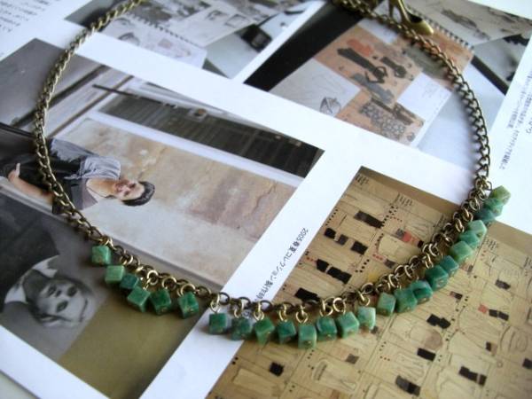 愛らしさのスパイス・・シリーズです♪永遠の愛・・深い緑色が神秘的なルビーインゾイサイトのネックレスです♪ルビーとゾイサイトが混合したパワーストーンです♪4ミリ位のキューブのルビーインゾイサイトを繋いでキュートな表情です♪長さは60センチ位で調節自由です♪チョーカー風にされても素敵です♪お揃いのブレスレットやピアスも出品しています♪シンプルで飽きのこないいつまでも着けられるデザインを考えて作りました!ハンドメイドをご理解頂いてノークレーム、ノーリターンでお願いします |