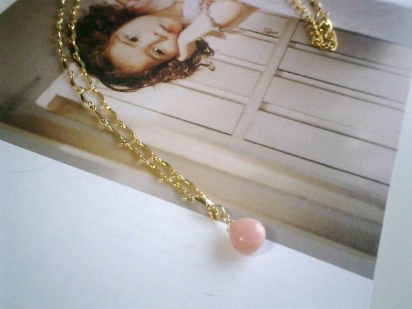 コゼットの裁縫箱・・シリーズです♪魔法のピンク・・キュートなピンクオパールのネックレスです♪12ミリ位のマロンシェイプのピンクオパールにデザインチェーンを合わせてロマンチックなデザインです♪長さは65センチ+アジャスター12センチで最長77センチ位です♪お揃いのブレスレットやピアスも出品しています♪シンプルで飽きのこないいつまでも着けられるデザインを考えて作りました!ハンドメイドをご理解頂いてノークレーム、ノーリターンでお願いします