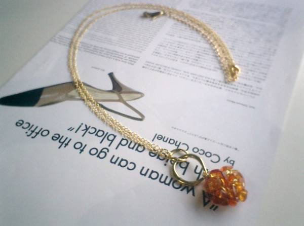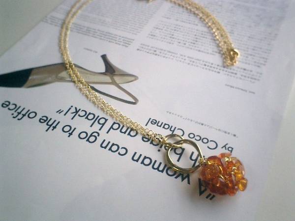天使の時間・・シリーズです♪日曜日の紅茶・・シックな琥珀のネックレスです♪華奢なチェーンやデザインリングを合わせて甘すぎない大人の表情です♪琥珀は3×7ミリ、4×10ミリ位のミニタンブルです♪長さは74センチ+アジャスター14センチで最長88センチ位です♪トップは5・5センチ位です♪お揃いのブレスレットやピアスも出品しています♪シンプルで飽きのこないいつまでも着けられるデザインを考えて作りました!ハンドメイドをご理解頂いてノークレーム、ノーリターンでお願いします