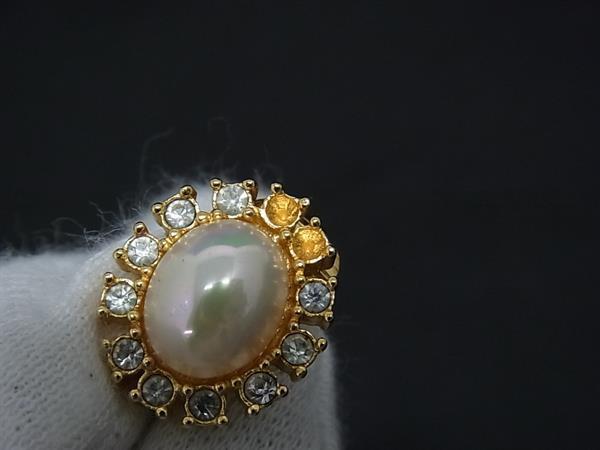 ■美品■ ChristianDior ディオール パール ラインストーン 片耳のみ クリップ式 イヤリング アクセサリー ゴールド系 DI1630