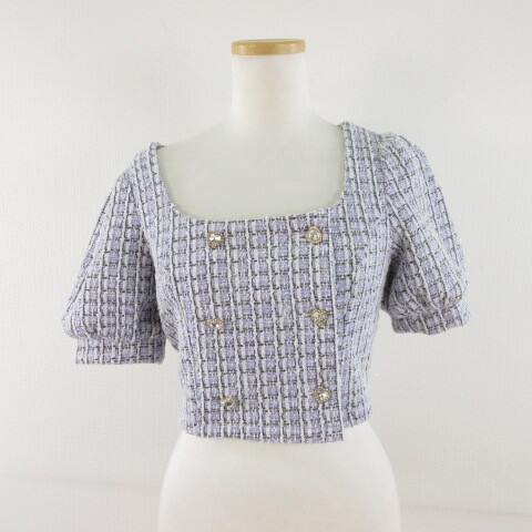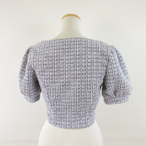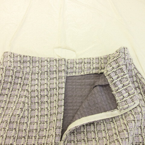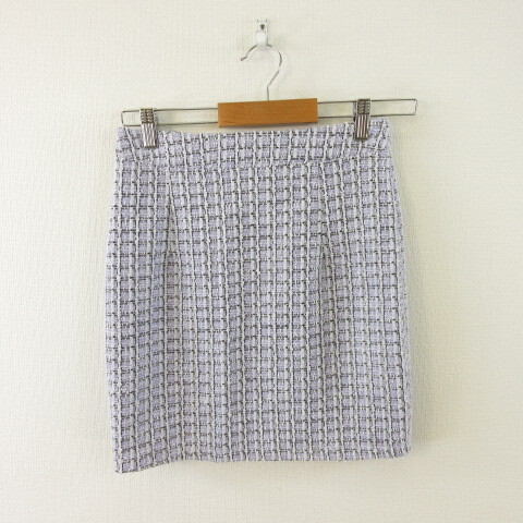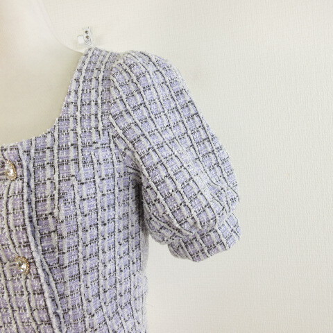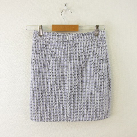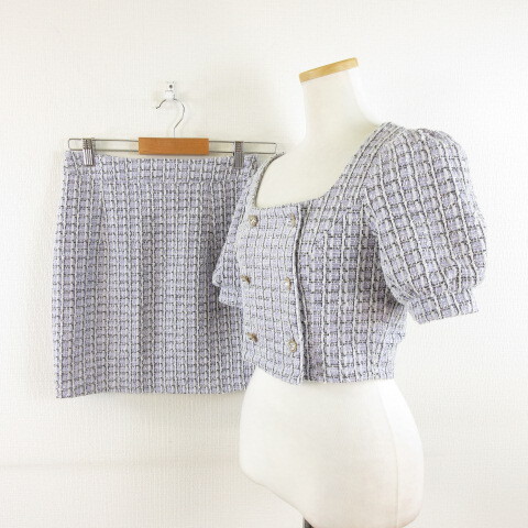 Dazy ツイードセットアップ カットソー 半袖 ミニスカート チェック 紫 白 S *A242 レディース