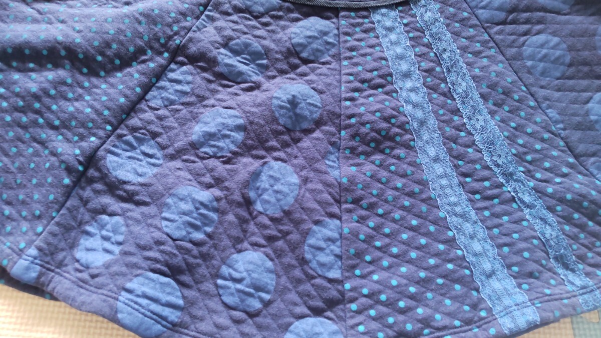 パッチワーク風の切替スカートで裏地はないですが 暖かいと思います。