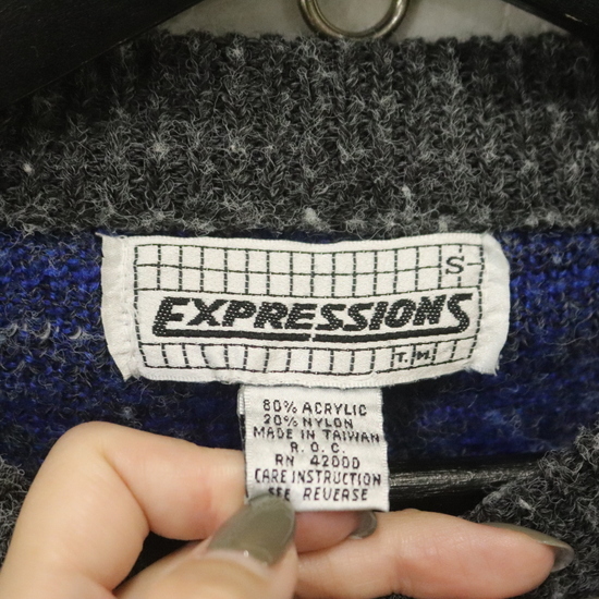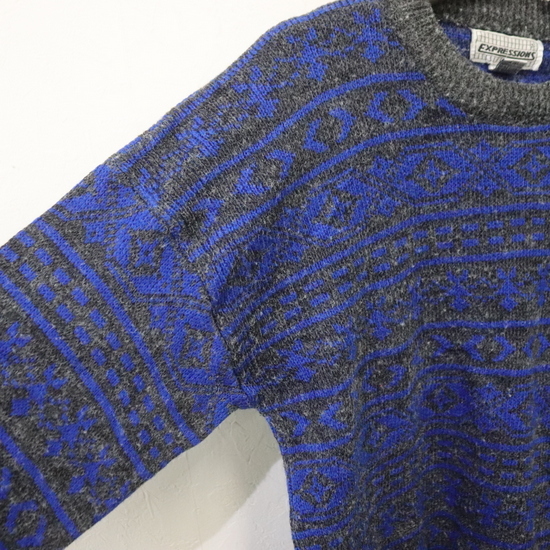 y369 80sビンテージ EXPRESSIONS アクリルニットセーター■1980年代製 表記Sサイズ グレー 柄 アメカジ ストリート 古着 古着卸 激安 90s