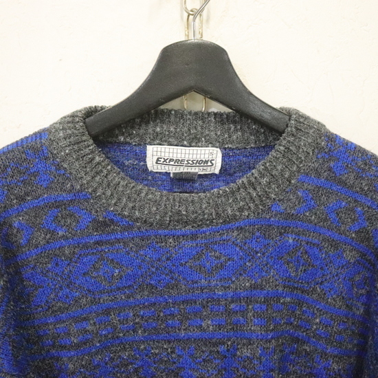 商品名 y369 80sビンテージ EXPRESSIONS アクリルニットセーター■1980年代製 表記Sサイズ グレー 柄 アメカジ ストリート 古着 古着卸 激安 90s
