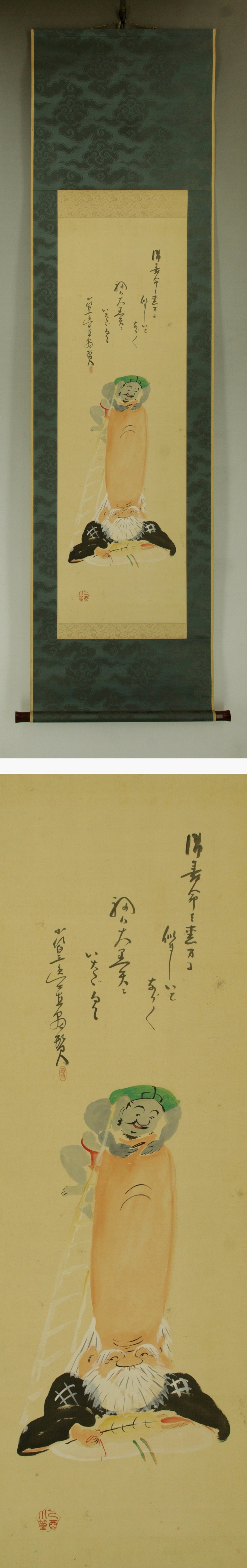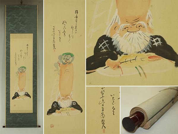 | №2506053【真作】田能村小篁【大津絵・福禄寿】◆絹本◆共箱◆掛軸 | |
