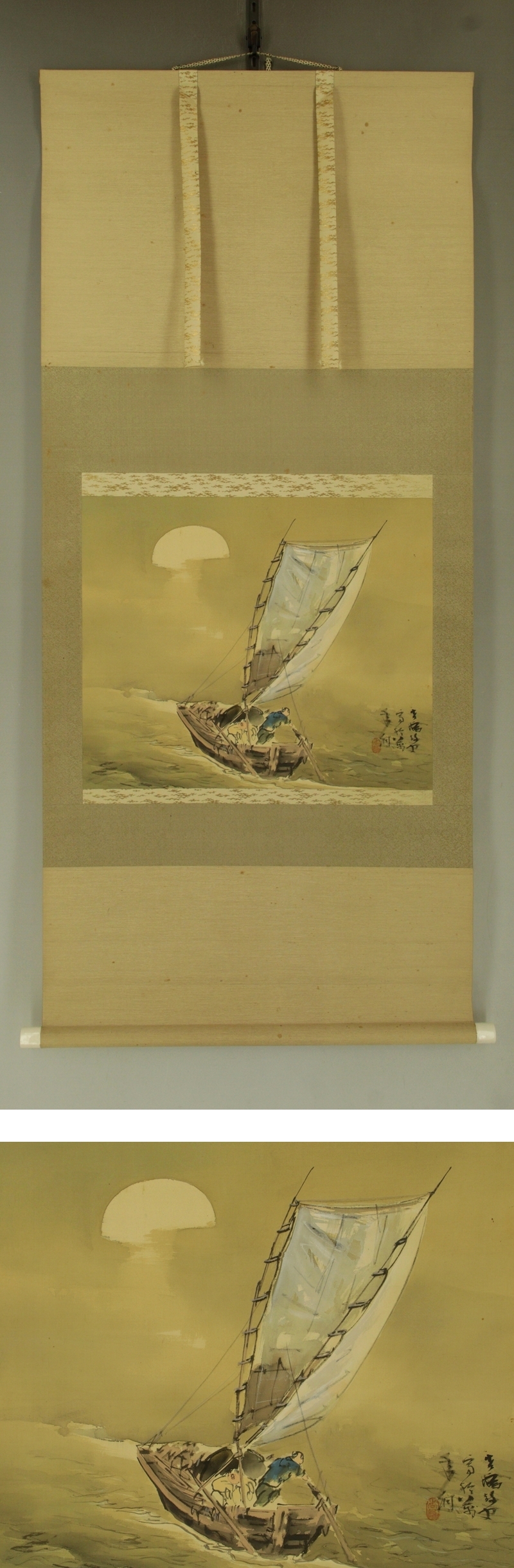| №2506054【真作】後藤杏塢【帆船】◆絹本◆共箱◆掛軸 | |