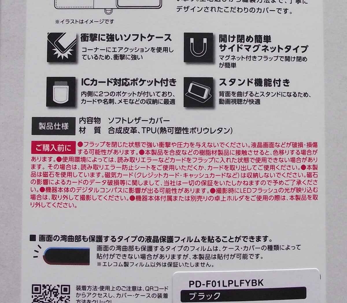 らくらくスマートフォン me F-01L F-42A用 手帳型ケース エレコム PD-F01LPLFYBK ブラック