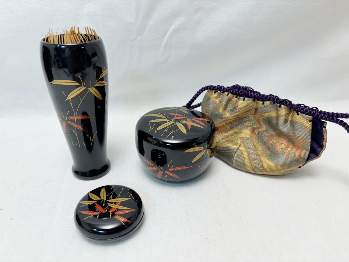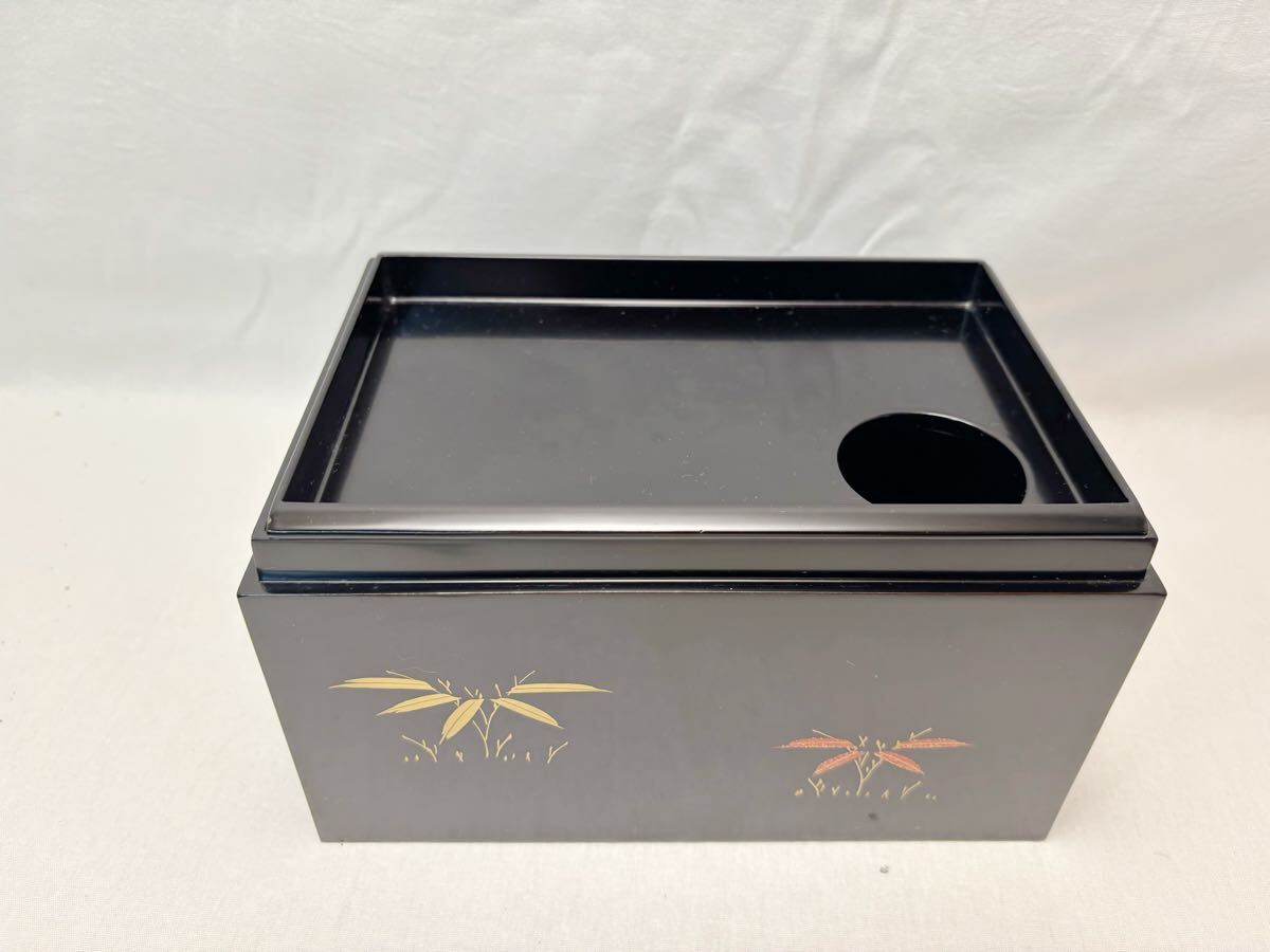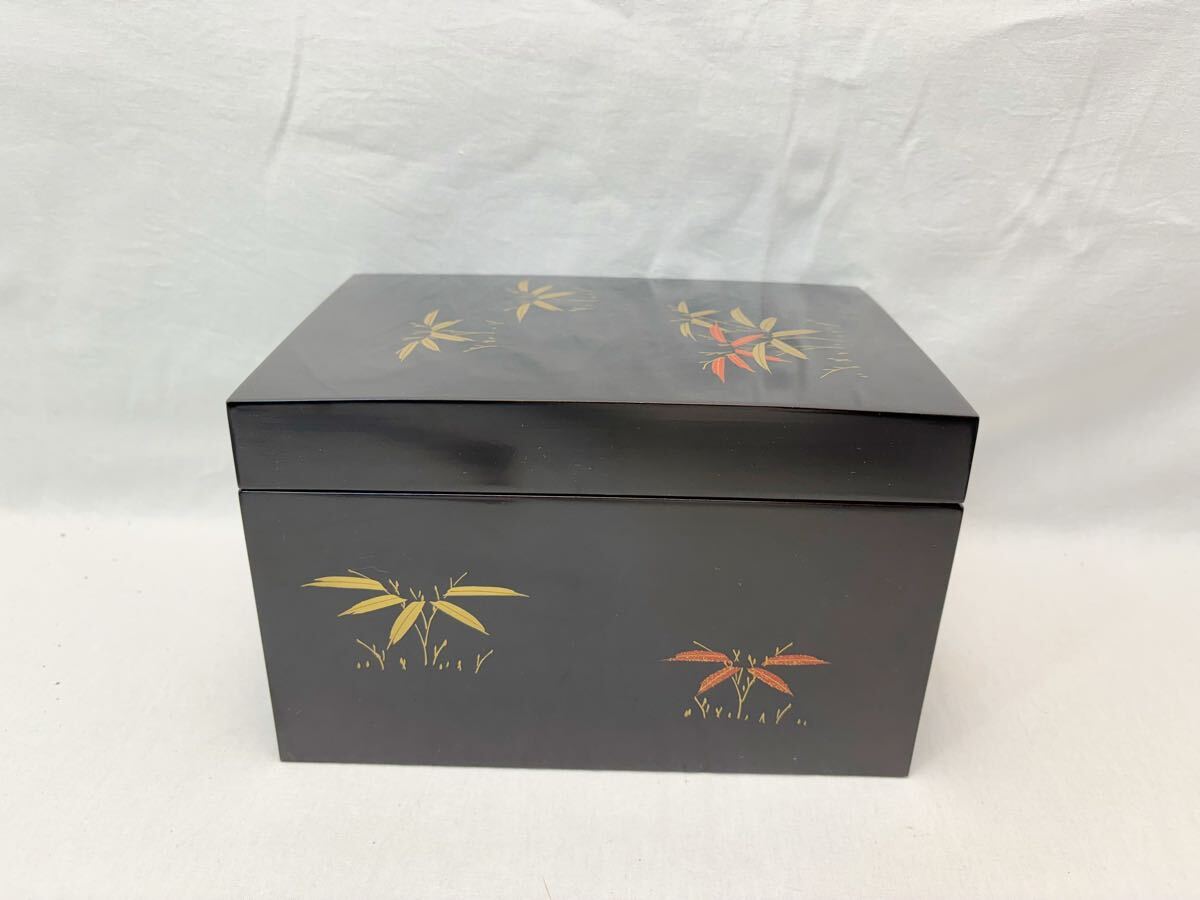 茶道具 木製黒真塗 蒔絵 利休茶箱セット でございます。