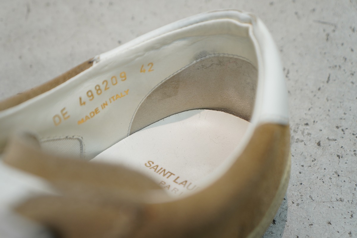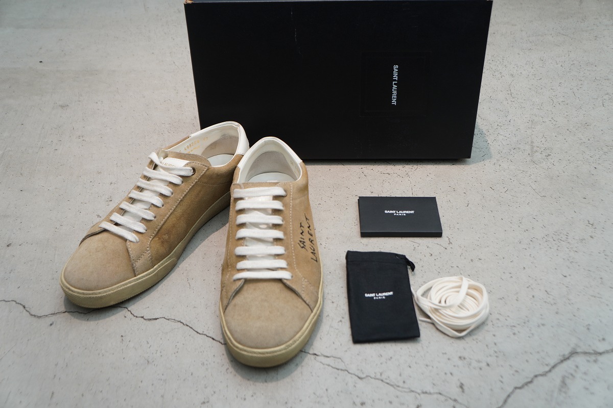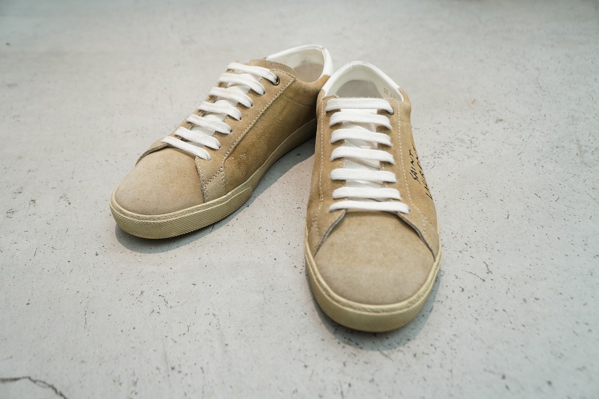 18SS SAINT LAURENT サンローラン 498209 USED加工 ローカット スエード レザー スニーカー シューズ サイズ42 ベージュです。