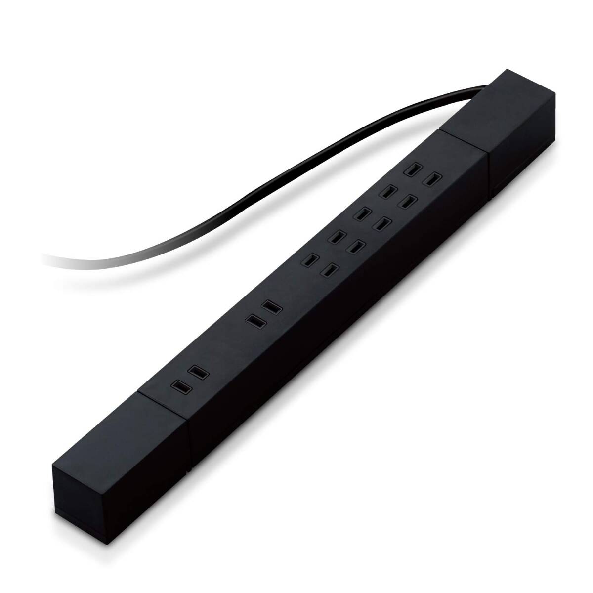 【 仕様 】 ■ 本体差込口形状:2ピン ■ 本体差込口個数:7口 ■ AC定格出力電力:1500W ■ AC定格出力電圧:125V ■ AC定格出力電流:15A ■ プラグ仕様:2ピン ■ スイングプラグ:○ ■ 絶縁キャップ付きプラグ:○ ■ コード長:1.0m ■ 二重被ふく:○ ■ 雷ガード:○ ■ ほこりシャッター:○ ■ マグネット:○ ■ カラー:ブラック ■ 材質:本体:ABS樹脂/プラグ:PVC/差込口:フェノール樹脂 ■ 外形寸法:約 幅371×奥行35×高さ36(mm)※コード部分及びプラグ部分を除く ■ 質量:約400g 【 説明 】 ■ 7つの差込口を備え、利用シーンに合わせ形状を変更させることができる可動式電源タップです。 ■ 脚パーツを展開することで重いACアダプタなどを接続した際もタップが横転しにくくなります。 ■ 脚パーツ底面には超強力なネオジム磁石を配しており、スチール製の事務機などにしっかりと固定できます。 ■ 差込口の取り出し方向を変更できる回転機構搭載しており、使用環境に合わせた自由度の高い設置が可能です。 ■ 差込口にプラグが差し込まれていない場合に埃の侵入を防止する「ほこり防止シャッター」を装備しています。 ■ 差込口には耐熱性に優れた熱硬化性樹脂を使用しており、万一の発熱の際にも融解しにくく、電気火災の防止に有効です。 ■ ACアダプタなど大きなプラグを接続しても隣の差込口に干渉しにくいよう、2つの差込口を他の差込口から離し、向きも変更して配置しています。 ■ 2ピン式のコンセントプラグにはトラッキング現象による火災の防止に有効な絶縁スリーブを装備しています。 ■ 狭い場所でも配線しやすい180°スイングプラグを採用しています。 ■ 電源コードには一般社団法人日本配線システム工業会規格(JWDS0010)に適合した二重被ふくコードを採用しており、断線や被ふく破れによる感電・火災の防止に有効です。 ■ 誘導雷による最大12500Vまでの雷サージを吸収する素子(バリスタ)を搭載し、接続機器を保護します。(※最大サージ電圧12500VはJEC210/212規格に基づく数値です。受けた電圧や回数により性能は劣化します。)