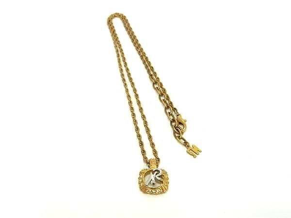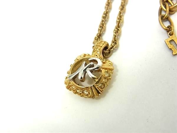 ■美品■ NINA RICCI ニナリッチ ロゴモチーフ ラインストーン ネックレス ペンダント アクセサリー レディース ゴールド系 DG9288