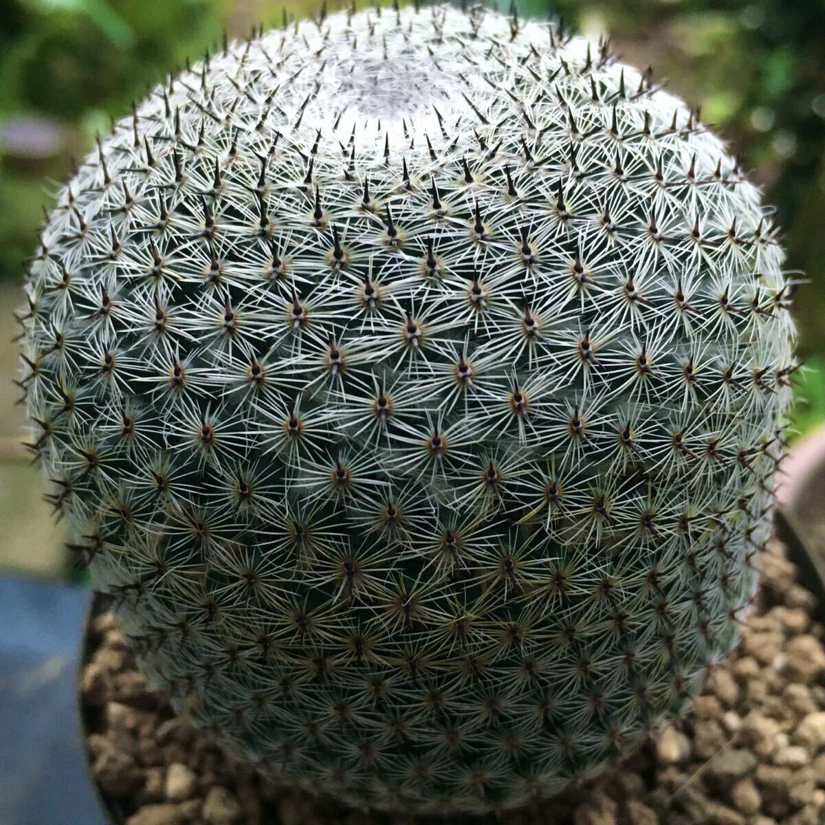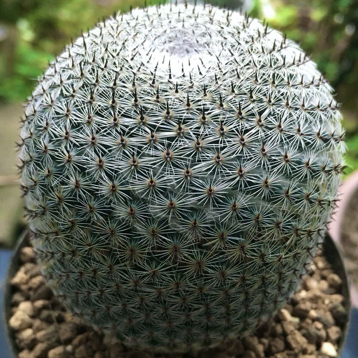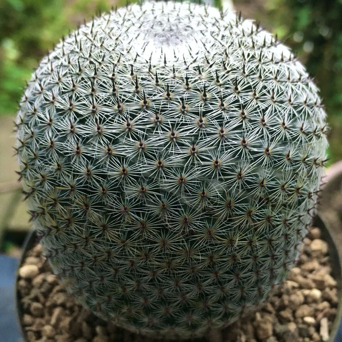 丸い形がとてもかわいく、ふわふわな白い綿毛と、上を向いて生える黒刺がとても美しい品種です。