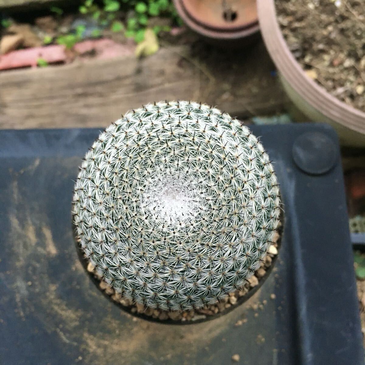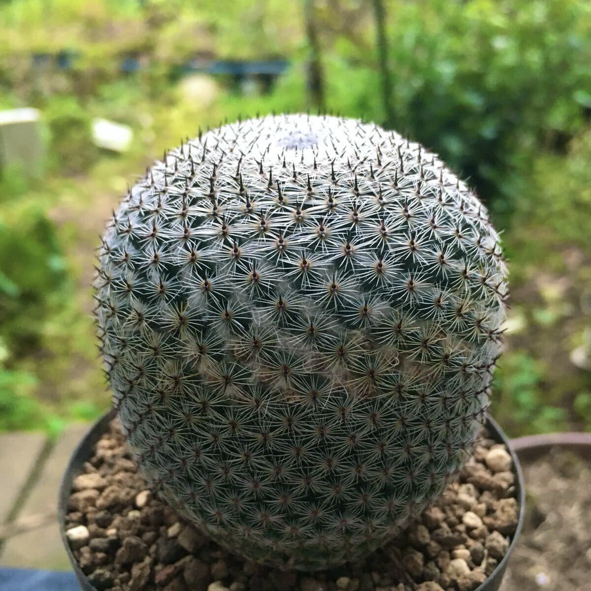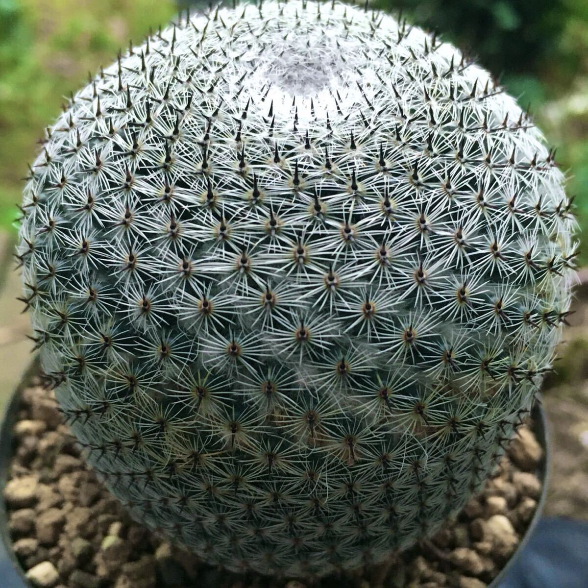 丸い形がとてもかわいく、ふわふわな白い綿毛と、上を向いて生える黒刺がとても美しい品種です。