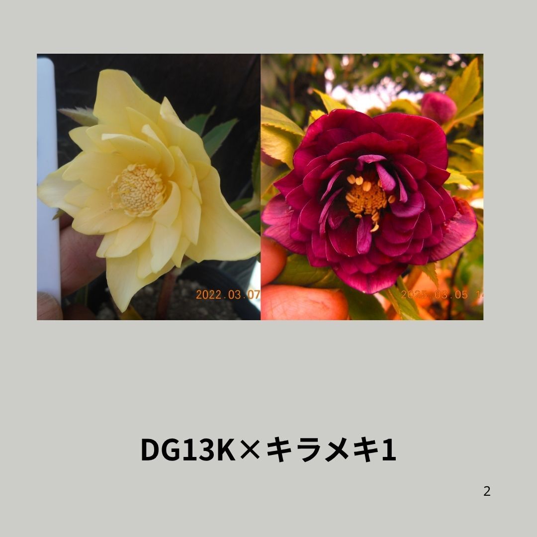クリスマスローズ フレグランス交配 ddゴールド芳香×キラメキ 超多弁グロスレッド 2024年発芽苗 即決 同梱可 略号:DG13K×キラメキ1