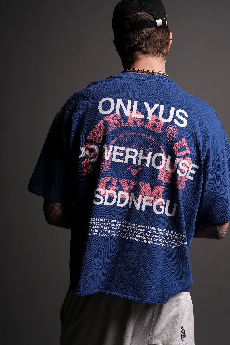 ■Darc Sport POWERHOUSE SSDD Only Us Gym Premium Raw Hem Box Cut Tee Darc Cobalt■