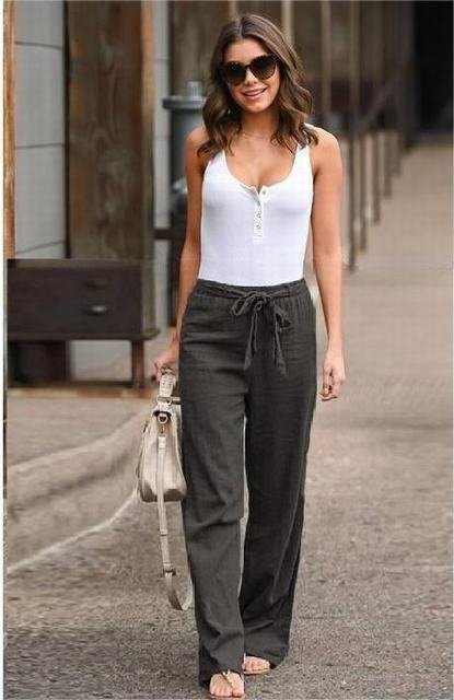 レディース ボトムス ひんやりパンツ リブリラックスパンツ ルームウエア 紐付き ゆったり 接触冷感 グレー 3XL