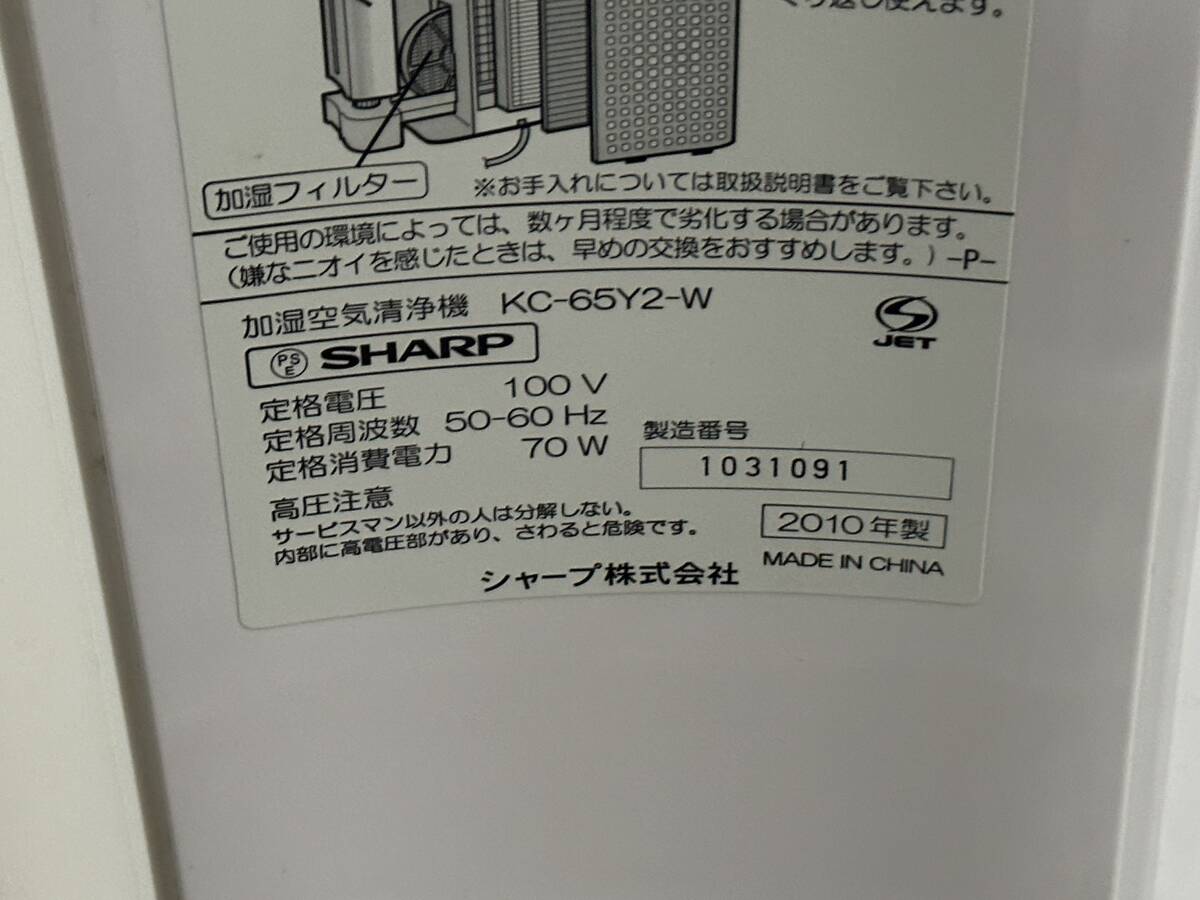 Q7157 通電OK/現状渡し☆売切☆SHARP シャープ KC-65Y2-W 加湿空気清浄機 2010年製