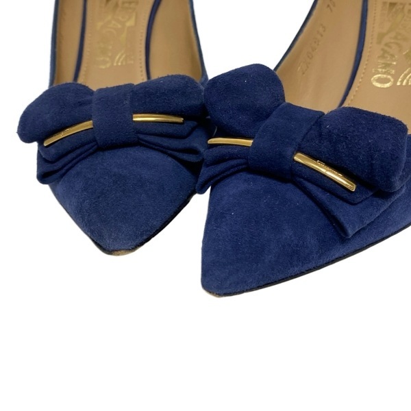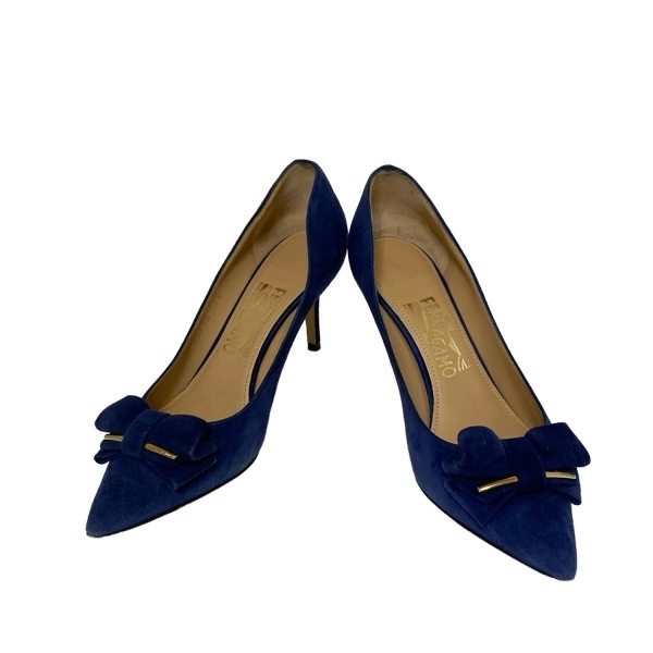 サルバトーレフェラガモ FERRAGAMO/SalvatoreFerragamo パンプス 7 C - ブルー レディース リボン 靴