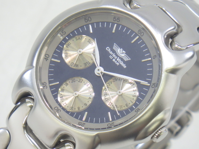 | ★☆h5J033Z Charles Vogele CV-7378 シャルルホーゲル クロノグラフ クォーツ メンズ腕時計 不動品☆★ | ||