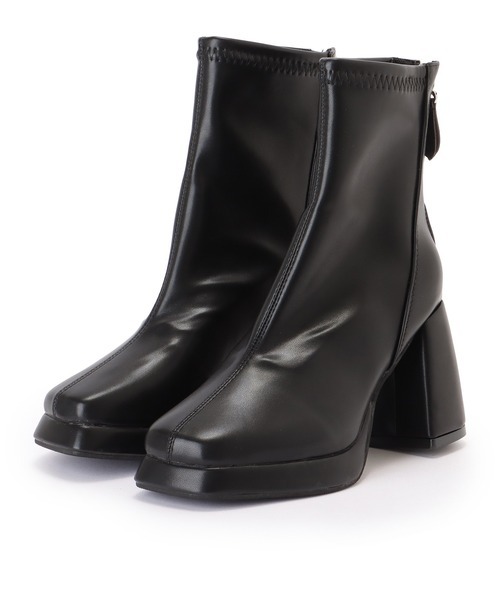 参考商品名:スクエアトゥ レザー調 チャンキー ショート ブーツ