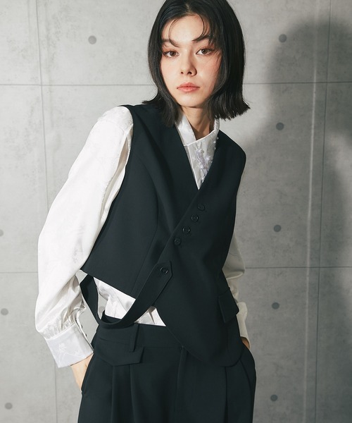 参考商品名:Vネックジレ&ワイドパンツセットアップ
