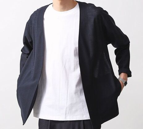 J火10700新品▼ タケオキクチ 【 XL 】ネイビー系 THE SHOP TK カーディガン 通気性 シャリルジャージ 吸水速乾性 ボタンレスカーディガン