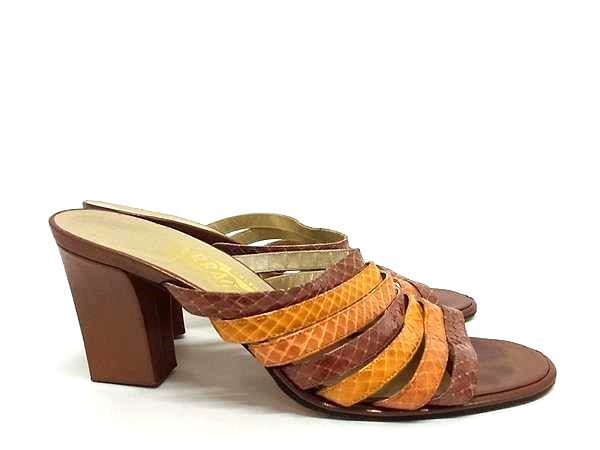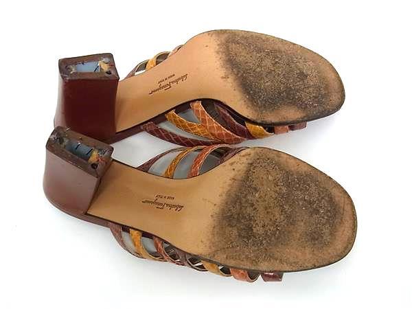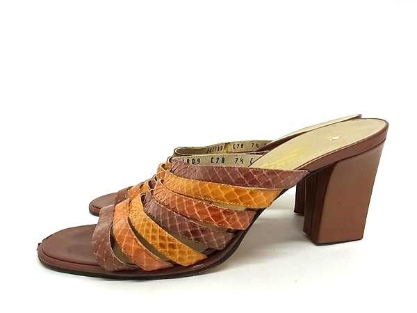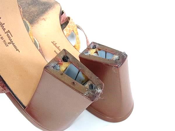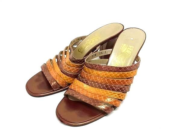 ■極上■本物■ Salvatore Ferragamo フェラガモ パイソン ヒール サンダル 表記サイズ 7 1/2(約25cm) 靴 シューズ ブラウン系 DG5133