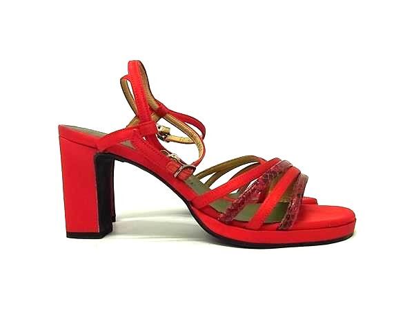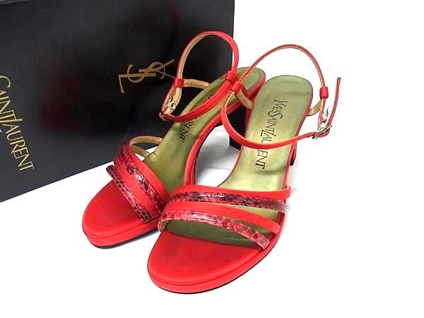 YVESSAINTLAURENT イヴサンローラン サテン×パイソン ハイヒール サンダル 表記サイズ 36(約23cm) 靴 シューズ レッド系 DJ8206