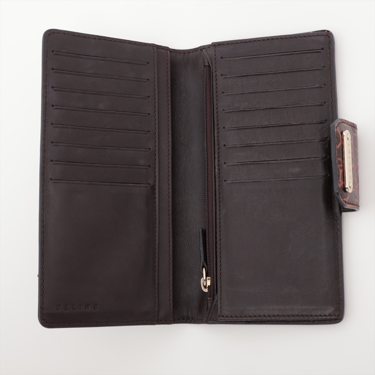 セリーヌ CELINE 長財布 キャンバス 型押しレザー マカダム ブラウン