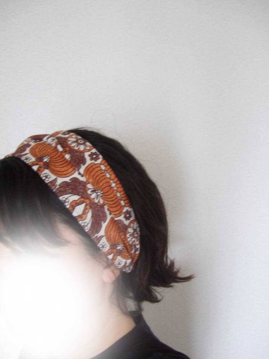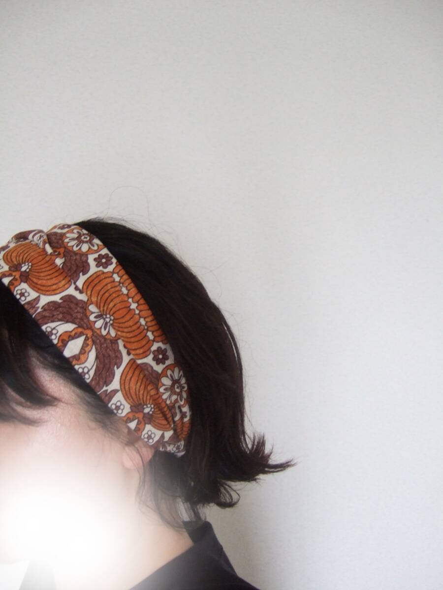 ★即決★ハンドメイド 秋のコーデのアクセントに 北欧風レトロ オレンジ バニラン織コットンのゆるターバン* ヘアバンド