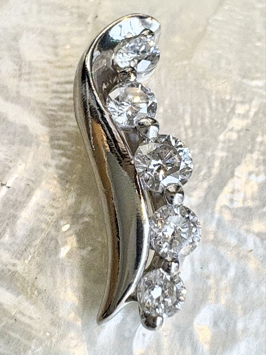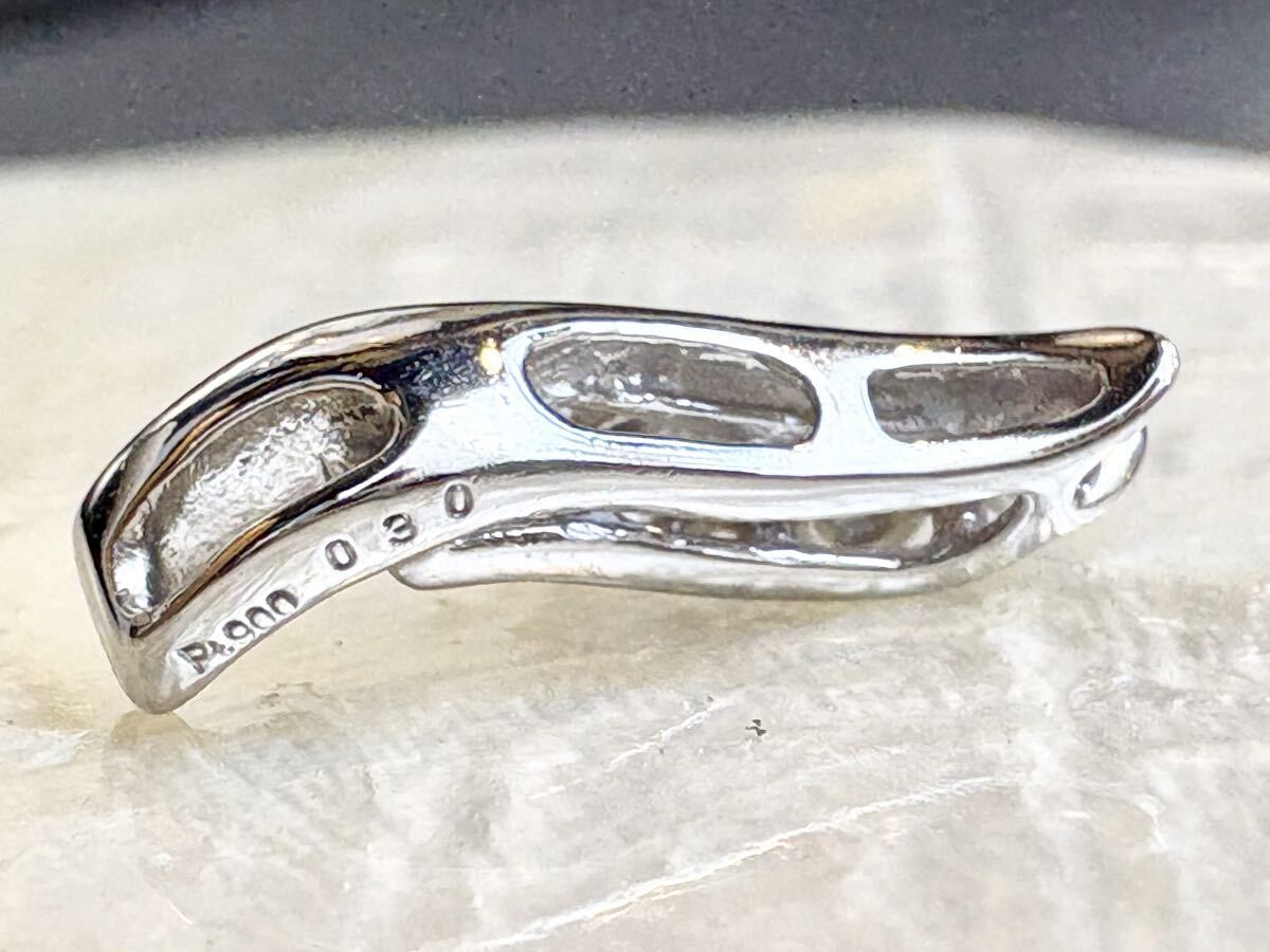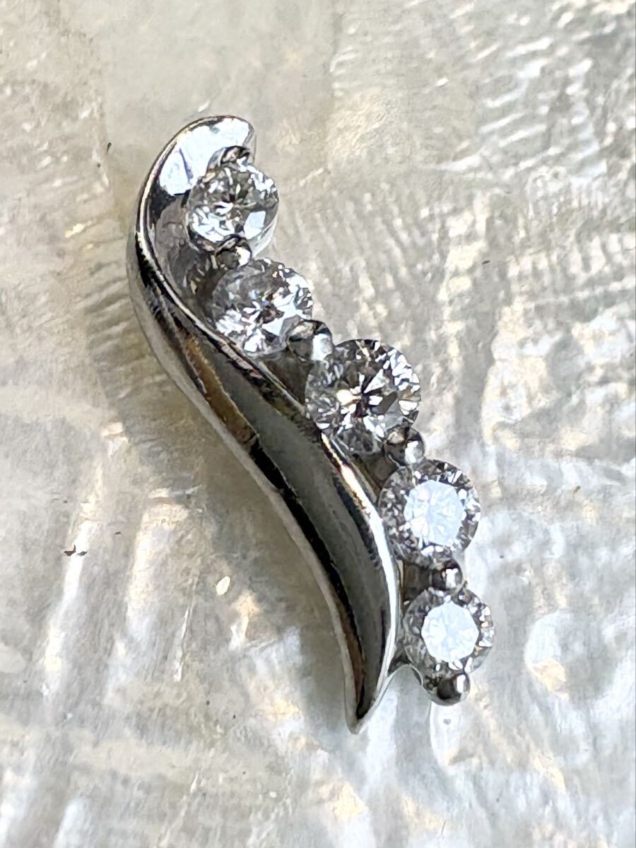 | pt900 ダイヤモンドTOP 4月の誕生石 ダイヤモンド:0.30ct 流れ落ちる雫のようなデザインがやさしい印象です ダイヤモンドは内包物は見受けられますが、透明感がありキラキラと輝きます 素敵なデザインなのですが... ネックチェーンを通す所が非常に小さい為、プレートが通らない可能性がございます 引き輪を外しての作業が必要になるかもしれませんので、ご自分で対応できる方などご了承いただける前提でのご入札をお願い致します お安くさせて頂きました ご質問は遠慮なくどうぞ 刻 印:Pt900、030 材 質:プラチナ900 宝 石:ダイヤモンド0.30c 重 量:約 1.50g サイズ:約 16mm×4.5mm 厚3.7mm チェーンプレート差し込み部分:約2.5mm 付属品:なし <商品の状態ランク:Used品 A~B > N:新品 NA:新品同様 A:綺麗なお品 B:少し使用感のあるお品 C:使用感のあるお品 (基準はお客様の立場に立ち厳しく判断しておりますが、Used品が主ですのでご了承の上入札をお願い致します。基本的には使用感の少ない美品、または新品仕上げをしたものの出品になります) 使用に伴う微小な擦りキズがございますが全体的には良い状態 洗浄/クリーニング済み ◆トラブル防止の為、完全な状態を求める方や神経質な方は、申し訳ございませんが入札はお控え下さい、USED品とのご理解の上で入札をお願いします ◆お使いの環境により実際のお色味と異なる場合がございます、ご了承ください ◆当方が鑑定し本物の基準を満たした商品のみを出品しています <お取り引きについて> ※消費税は全て含まれた価格となっております ※落札から5日以内のご入金をお願いいたします 5日経ちましてもご入金がない場合は、落札者様都合のキャンセルとさせていただきます ※高額商品の場合にはカードの不正利用を防止し皆様に安心してお買い物をして頂くため、カードの有効性を確認させて頂いております 商品の発送に最長5営業日程度頂く場合がございますので予めご了承下さいませ ※商品に問題がある場合を除き、返品・交換はお受けしておりません ※[配送時の紛失、破損]30万円以内の商品についてはおてがる配送(ヤマト運輸)を利用しております、その為配送トラブルがあった場合にはお客様のほうでお手続きが必要になります こちらをご一読くださいませ https://support.yahoo-net.jp/SccAuctions/s/article/H000008837 ※梱包について、宅急便コンパクト以外は基本リサイクルのダンボールを使用いたします、ご了承ください ※プレゼント用ラッピングのご希望があれば対応いたします、お気軽にお申し付けください 販売業者 ジュエリーリマーニ 営業時間 12:00~18:00(定休日:月曜日及び日曜祝日) メールアドレス rie-t@jewelry-rimani.com ホームページ https://jewelry-rimani.com 古物許可番号 307731208486 | |