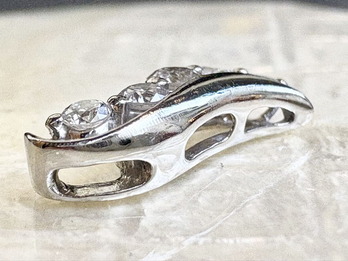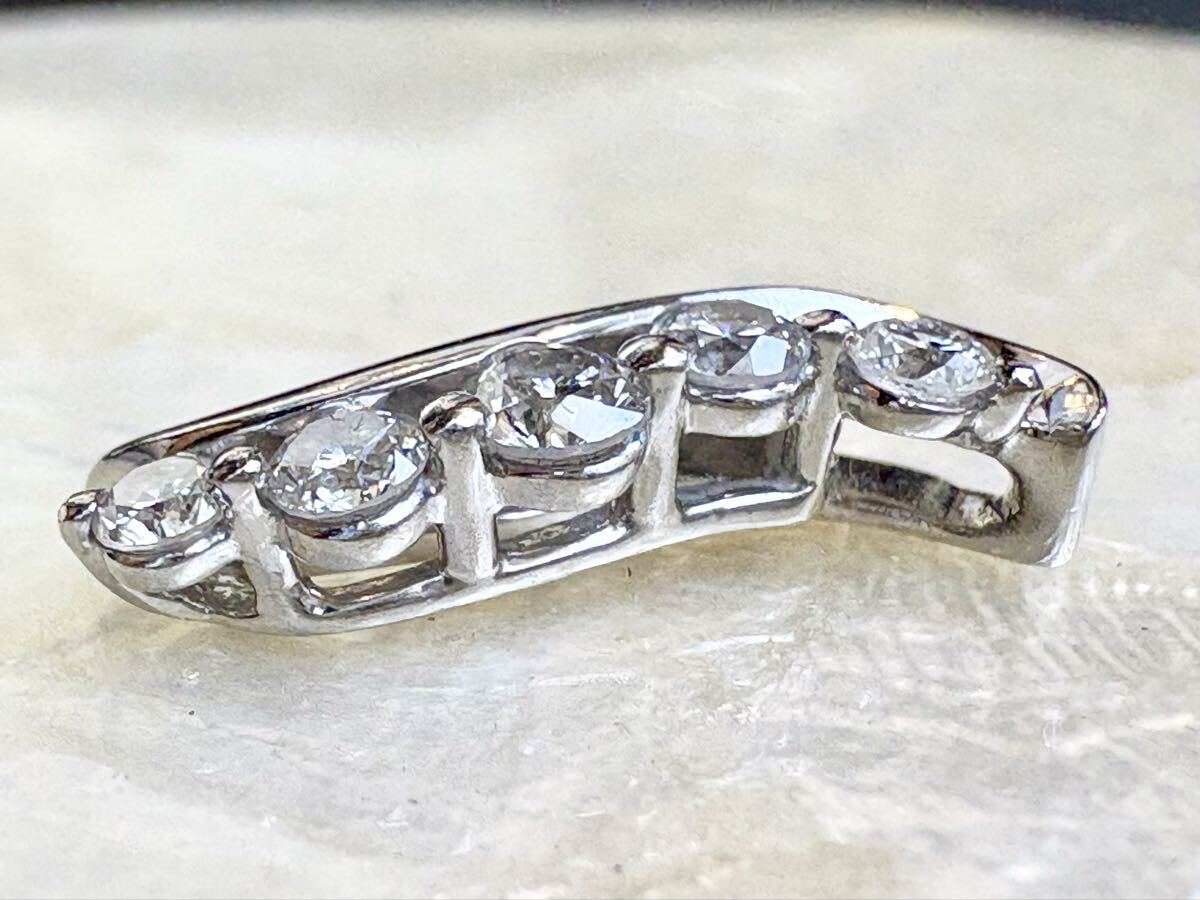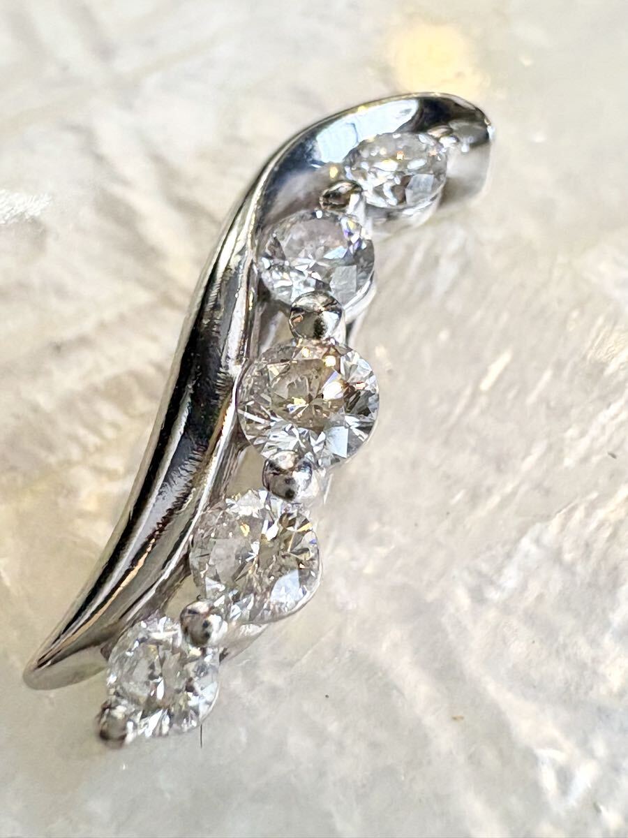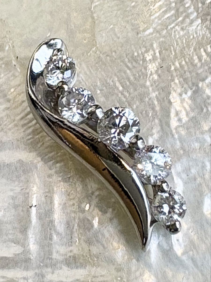 | pt900 ダイヤモンドTOP 4月の誕生石 ダイヤモンド:0.30ct 流れ落ちる雫のようなデザインがやさしい印象です ダイヤモンドは内包物は見受けられますが、透明感がありキラキラと輝きます 素敵なデザインなのですが... ネックチェーンを通す所が非常に小さい為、プレートが通らない可能性がございます 引き輪を外しての作業が必要になるかもしれませんので、ご自分で対応できる方などご了承いただける前提でのご入札をお願い致します お安くさせて頂きました ご質問は遠慮なくどうぞ 刻 印:Pt900、030 材 質:プラチナ900 宝 石:ダイヤモンド0.30c 重 量:約 1.50g サイズ:約 16mm×4.5mm 厚3.7mm チェーンプレート差し込み部分:約2.5mm 付属品:なし <商品の状態ランク:Used品 A~B > N:新品 NA:新品同様 A:綺麗なお品 B:少し使用感のあるお品 C:使用感のあるお品 (基準はお客様の立場に立ち厳しく判断しておりますが、Used品が主ですのでご了承の上入札をお願い致します。基本的には使用感の少ない美品、または新品仕上げをしたものの出品になります) 使用に伴う微小な擦りキズがございますが全体的には良い状態 洗浄/クリーニング済み ◆トラブル防止の為、完全な状態を求める方や神経質な方は、申し訳ございませんが入札はお控え下さい、USED品とのご理解の上で入札をお願いします ◆お使いの環境により実際のお色味と異なる場合がございます、ご了承ください ◆当方が鑑定し本物の基準を満たした商品のみを出品しています <お取り引きについて> ※消費税は全て含まれた価格となっております ※落札から5日以内のご入金をお願いいたします 5日経ちましてもご入金がない場合は、落札者様都合のキャンセルとさせていただきます ※高額商品の場合にはカードの不正利用を防止し皆様に安心してお買い物をして頂くため、カードの有効性を確認させて頂いております 商品の発送に最長5営業日程度頂く場合がございますので予めご了承下さいませ ※商品に問題がある場合を除き、返品・交換はお受けしておりません ※[配送時の紛失、破損]30万円以内の商品についてはおてがる配送(ヤマト運輸)を利用しております、その為配送トラブルがあった場合にはお客様のほうでお手続きが必要になります こちらをご一読くださいませ https://support.yahoo-net.jp/SccAuctions/s/article/H000008837 ※梱包について、宅急便コンパクト以外は基本リサイクルのダンボールを使用いたします、ご了承ください ※プレゼント用ラッピングのご希望があれば対応いたします、お気軽にお申し付けください 販売業者 ジュエリーリマーニ 営業時間 12:00~18:00(定休日:月曜日及び日曜祝日) メールアドレス rie-t@jewelry-rimani.com ホームページ https://jewelry-rimani.com 古物許可番号 307731208486 | |