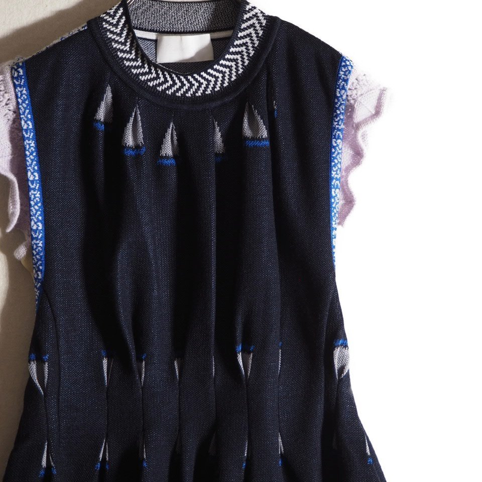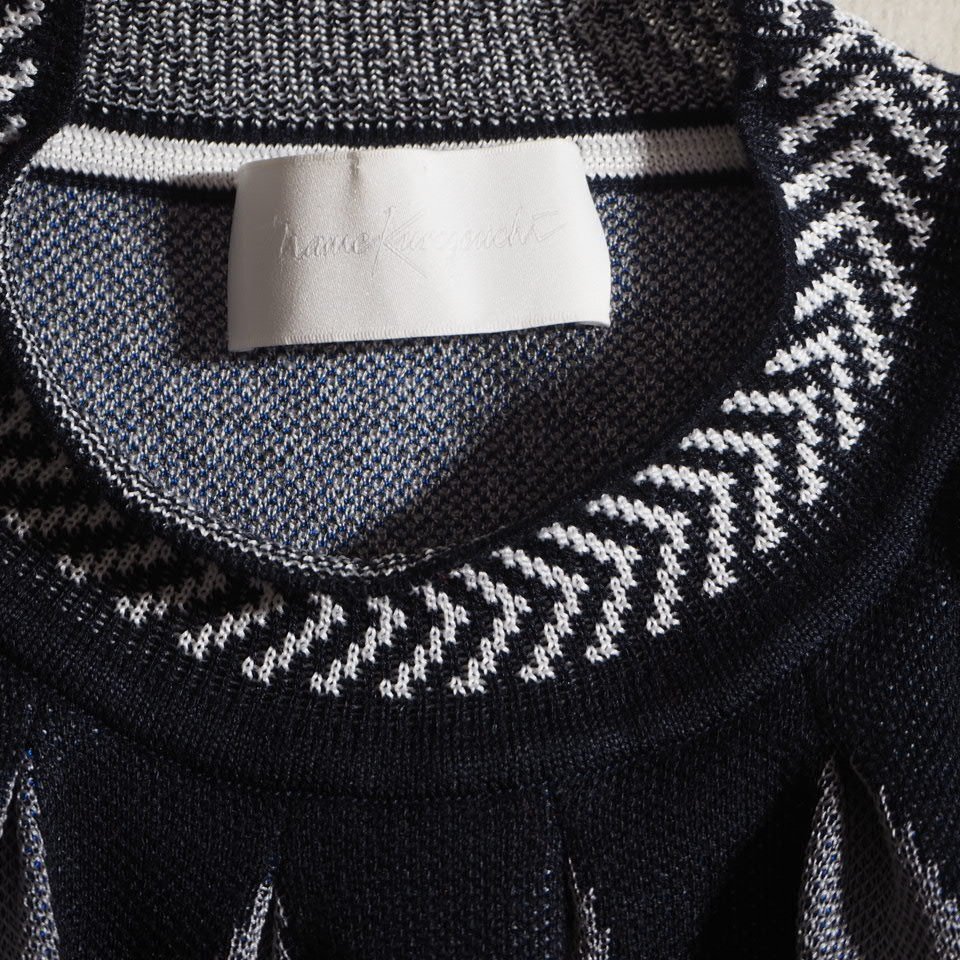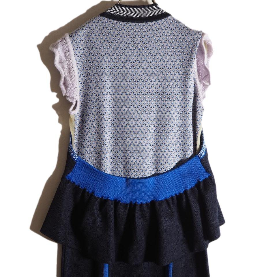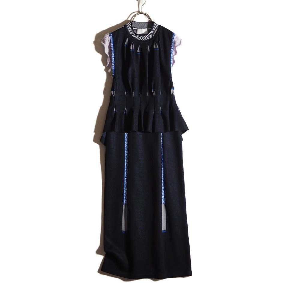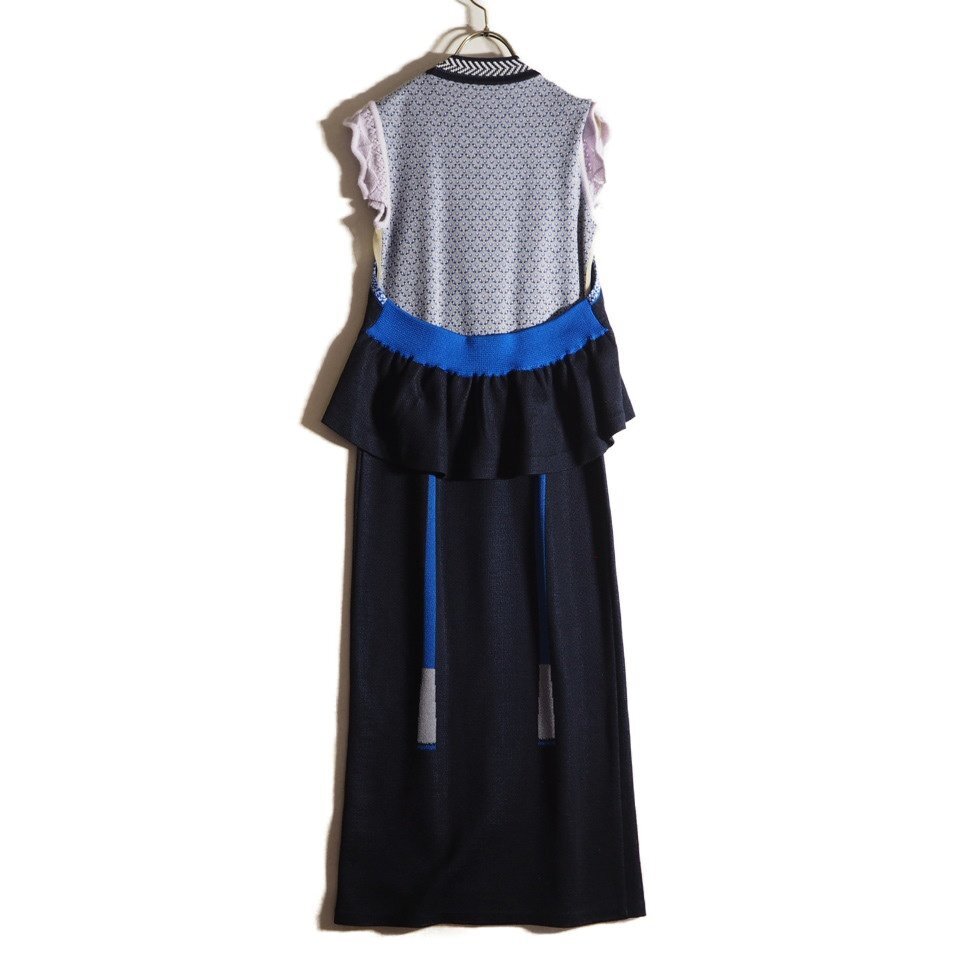 P7092f19 ▼Mame Kurogouchi マメクロゴウチ▼ Layered Collage Knit Peplum One-Piece ポリエステル ニットワンピース ネイビー 2 秋~春