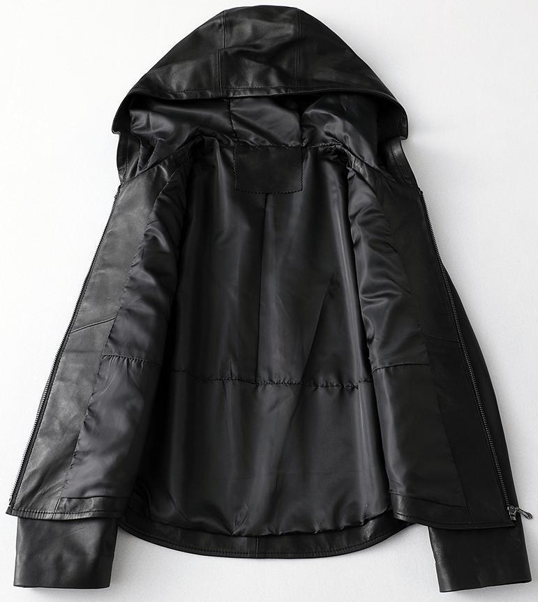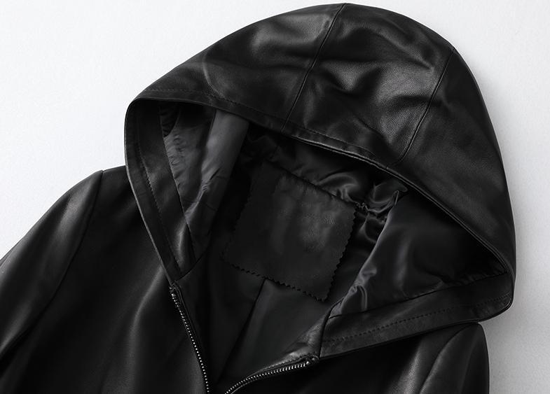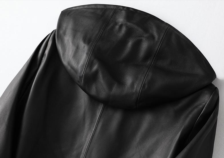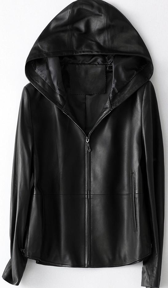 | レディース高級 本革↑超ソフトなラムレザージャケット黒☆帽子付ラムレザーコート | ||