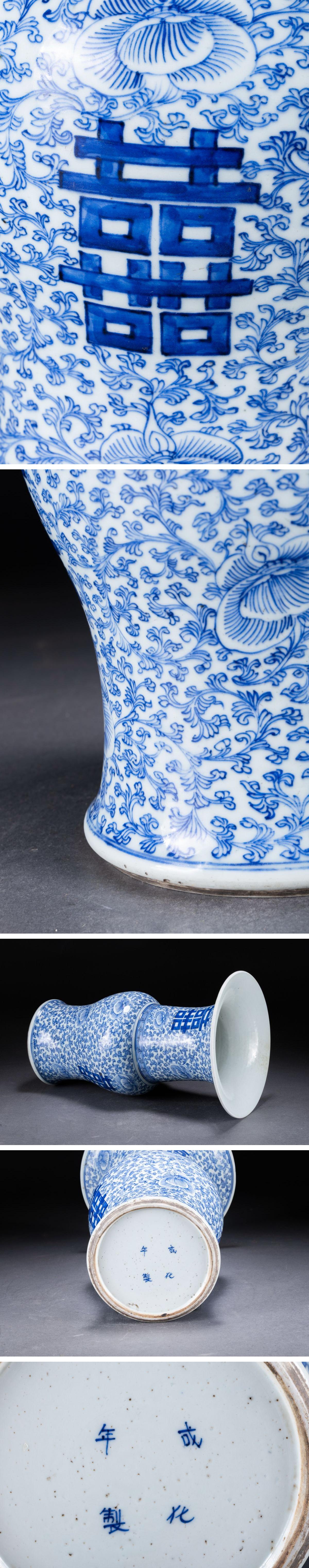 【華】時代舊藏 明時代 中国伝来 成化年製 青花花卉紋花瓶 花入 時代物 古美術 骨董品A25070377-IQ